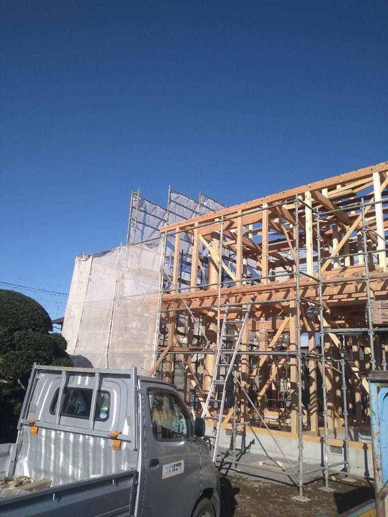 「直径45cmの丸太柱がそびえる和モダン住宅」さんの上棟の様子です!