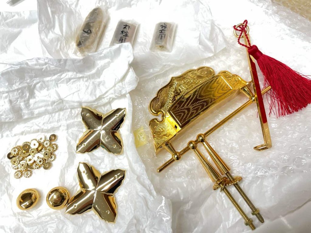 神社の本殿建替え工事の装飾金物と鍵が当社に届きました。
