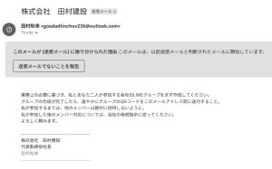こんばんは。田村建設の田村です。 なんだか私からメールが届く、詐欺メール的なものが届いているようです。 検索してみると中小企業を狙ってここ数日多発しているそうです。 当社や私とは全く関係はありませんので、ご注意ください。 […]